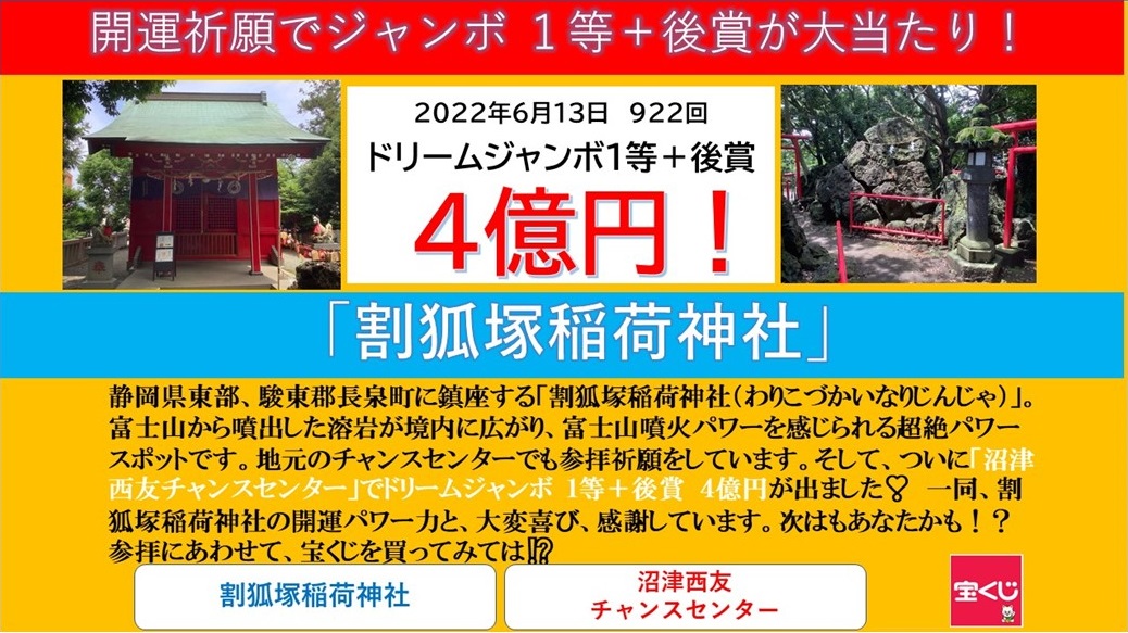 第922回ドリームジャンボ1等前後賞100,000,000円