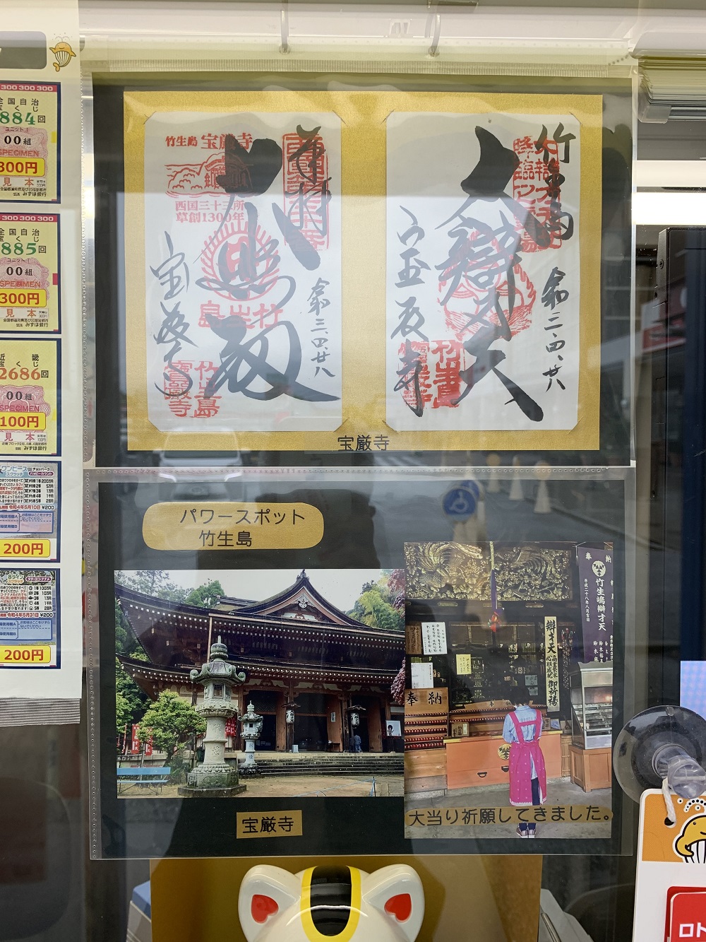 琵琶湖に浮かぶ「竹生島・宝厳寺」は県内屈指のパワースポットです。売場では令和3年4月に大当たりを祈願したお札を掲示、翌年(令和4年1月)にロト6で2等1,105万円の大当たりが出、昨年(令和5年12月)の年末ジャンボではついに1等及び後賞合わせて8億5千万円が出た大変縁起の良い売場です!