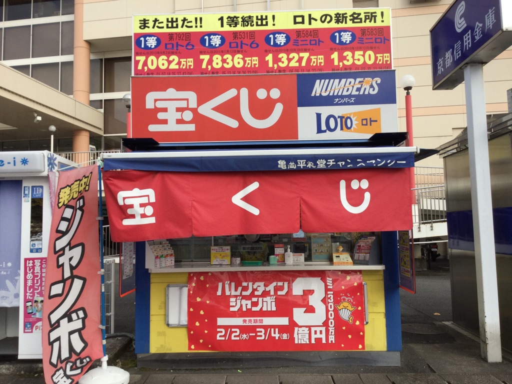 アル・プラザ亀岡店の入口横にあるボックスタイプの宝くじ売場です。