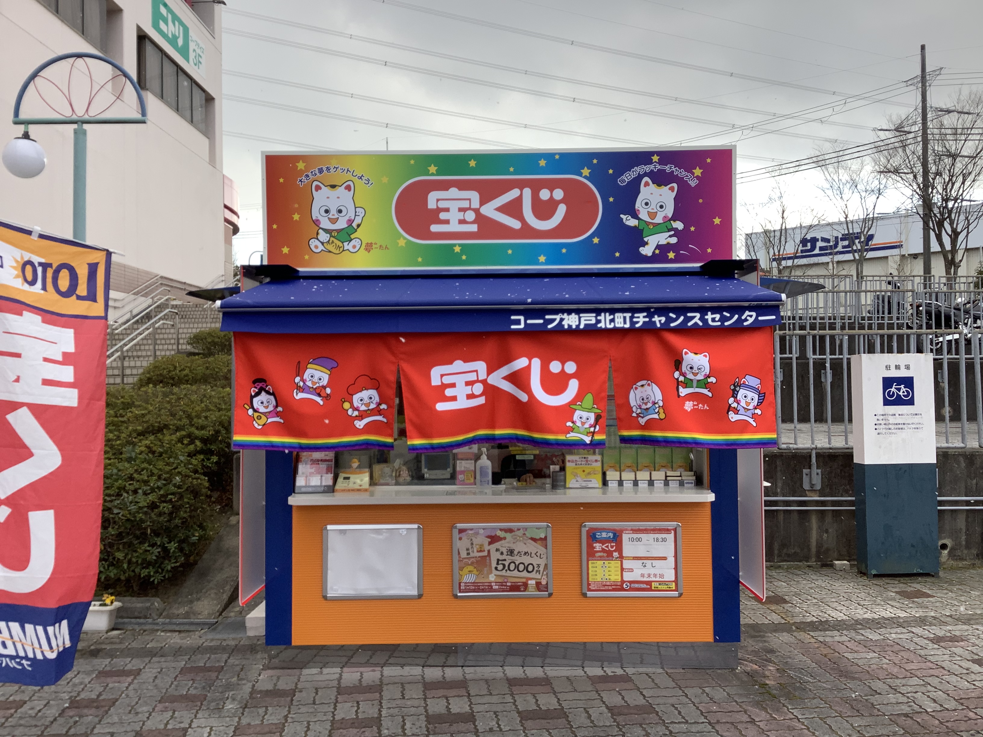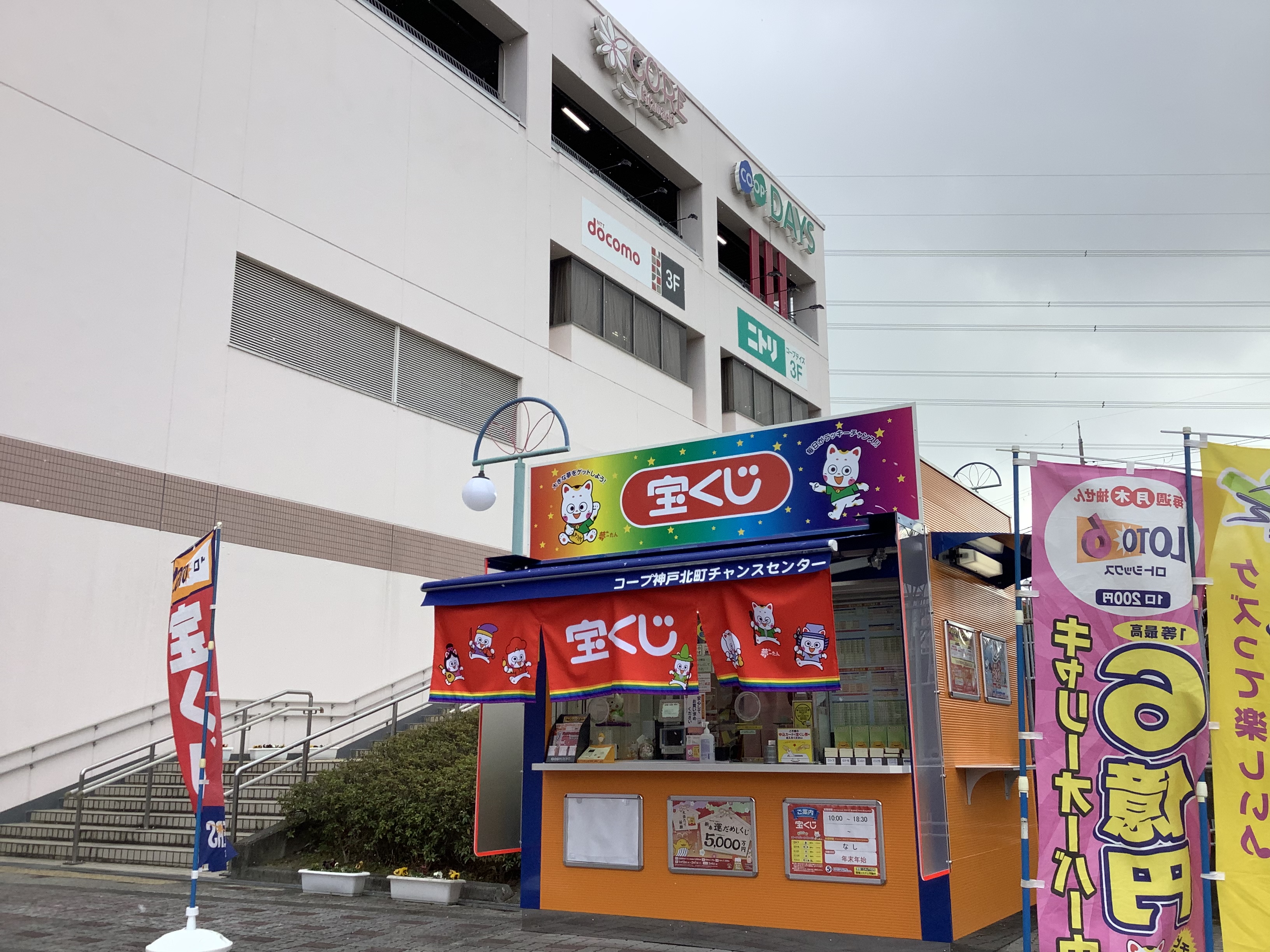 コープ神戸北町チャンスセンターは、北区日の峰 の コープデイズ神戸北町 出入口近く、お花屋さんの隣にあります。