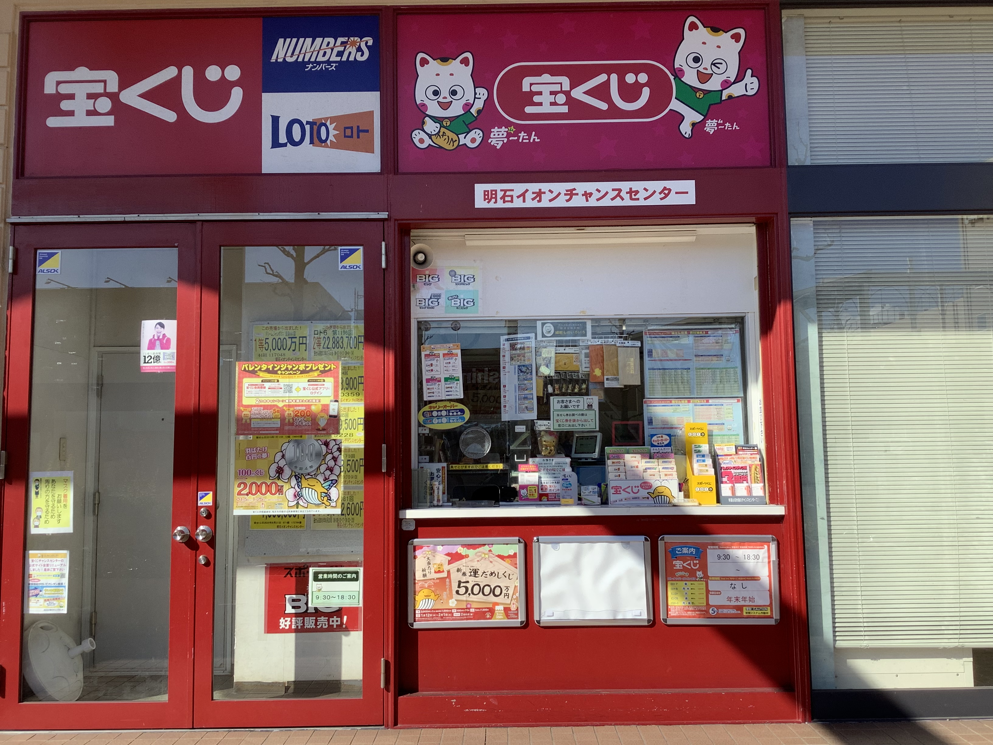明石イオンチャンスセンターは、JR大久保駅前 イオン明石ショッピングセンター 三番街1階 、明姫大久保交差点近くにあります。
