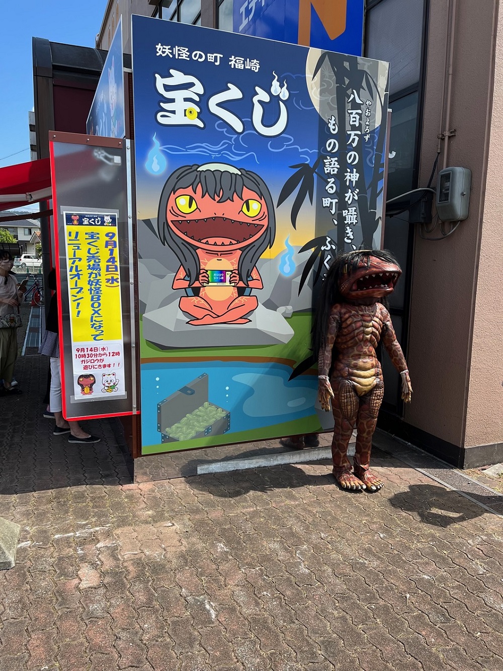 2022年9月、宝くじ売り場が妖怪ボックスとなってリニューアルオープン! 八百万の神が囁き、福が咲く。もの語る町、ふくさき。ふくさきに棲む妖怪ガジロウが、愛らしい姿となってお客さまをお迎えします。ガジロウの不思議なパワーで、「億」は目の前です!!