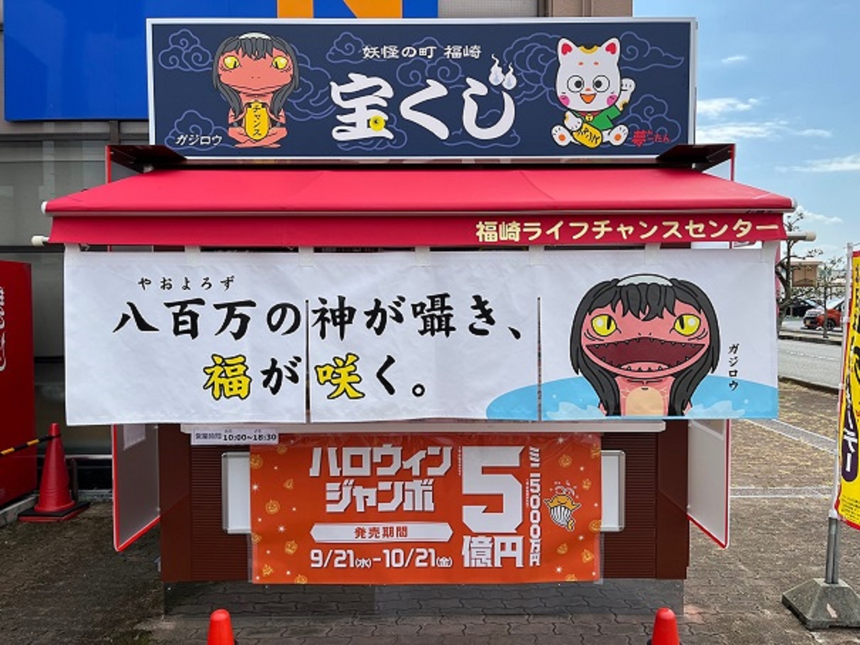 2022年9月、宝くじ売り場が妖怪ボックスとなってリニューアルオープン! 八百万の神が囁き、福が咲く。もの語る町、ふくさき。ふくさきに棲む妖怪ガジロウが、愛らしい姿となってお客さまをお迎えします。ガジロウの不思議なパワーで、「億」は目の前です!!