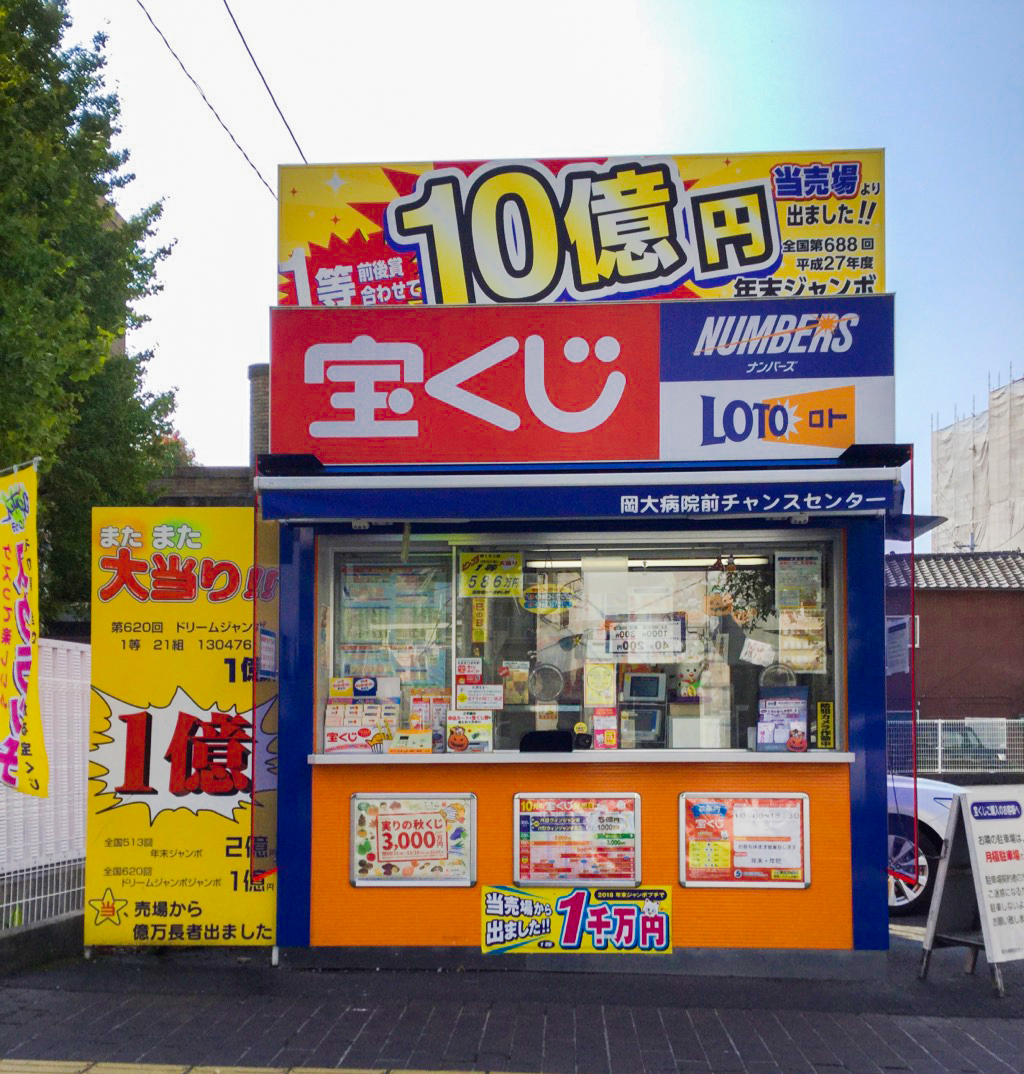 「えっ!こんな所に宝くじ売場?」初めての方は、おそらくそう思われるでしょう。実はこの売場、弊社県内第1番目として1977年に開店して以来、数多くの高額当せんを出している県下有数の幸運の売場なのです。宝くじファンならほとんどのお客様はご存じで、岡山県の中心地でありながら、県外からもお越しいただく売場になっています。そんな熱心なお客さまの声が届いたのでしょうか、2015年の年末ジャンボから1等前後賞が10億円に引き上げられたその年にこの売場が大的中。