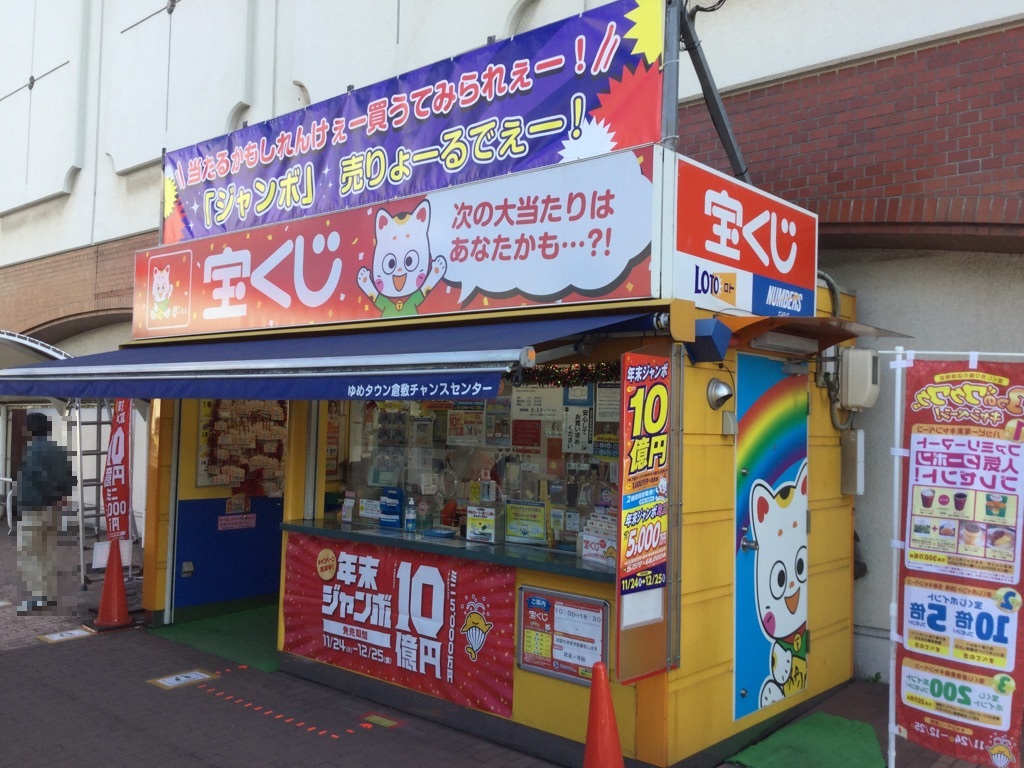 億万長者も出ている「ゆめタウン倉敷チャンスセンター」は国道2号岡山バイパスと市道古城池線沿いにある開店40年以上の歴史ある老舗の宝くじ売場です。