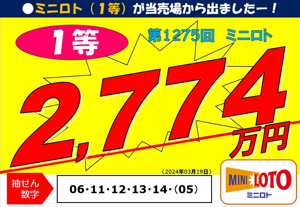 第1275回ミニロト1等27,749,900円