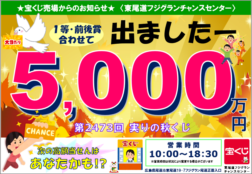 第2473回実りの秋くじ1等前後賞10,000,000円