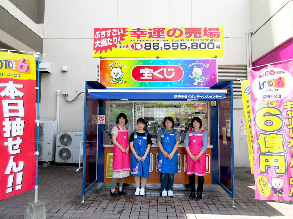 JR防府駅から徒歩1分。イオン防府店入口に位置する売場です。ロト6、1等8,600万円の看板が目印ですが、本数で言えば何と言ってもスクラッチの高額当選です!ここ3年間で300万円を皮切りに1等が7本も出ました。『スクラッチの当たる売場』として、常連さんはスクラッチボードを指さし『○番と○番ちょうだい』、又後ろのお客様は『私はぜーんぶ5枚ずつね』と笑顔でご購入!もちろん手にはスクラッチとセットで買って下さった『夢~たん削り棒』でスリスリです!私たちも『お客様!いかがでしたか?お調べいたします。当りがあるといいですね!』と会話が弾みます。売場から車で10分の場所には『紫陽花寺』と呼ばれる『阿弥陀寺』があります。この季節には約80種類4,000株もの紫陽花が咲き乱れ、パワーアップのスポットになっています。パワーアップの後には、是非『防府中央イオン』においでませ!