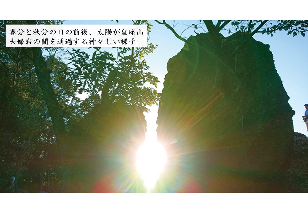 近隣パワースポットは 隣町上関町皇座山(おうざさん)キャンプ場近くにある、大きな夫婦岩。春分の日と秋分の日の前後1週間、この夫婦岩の間を太陽が通過する、珍しい現象が見られます。しかも日が昇る時だけでなく、岩の反対側に回れば日が暮れる時も見られるから不思議!