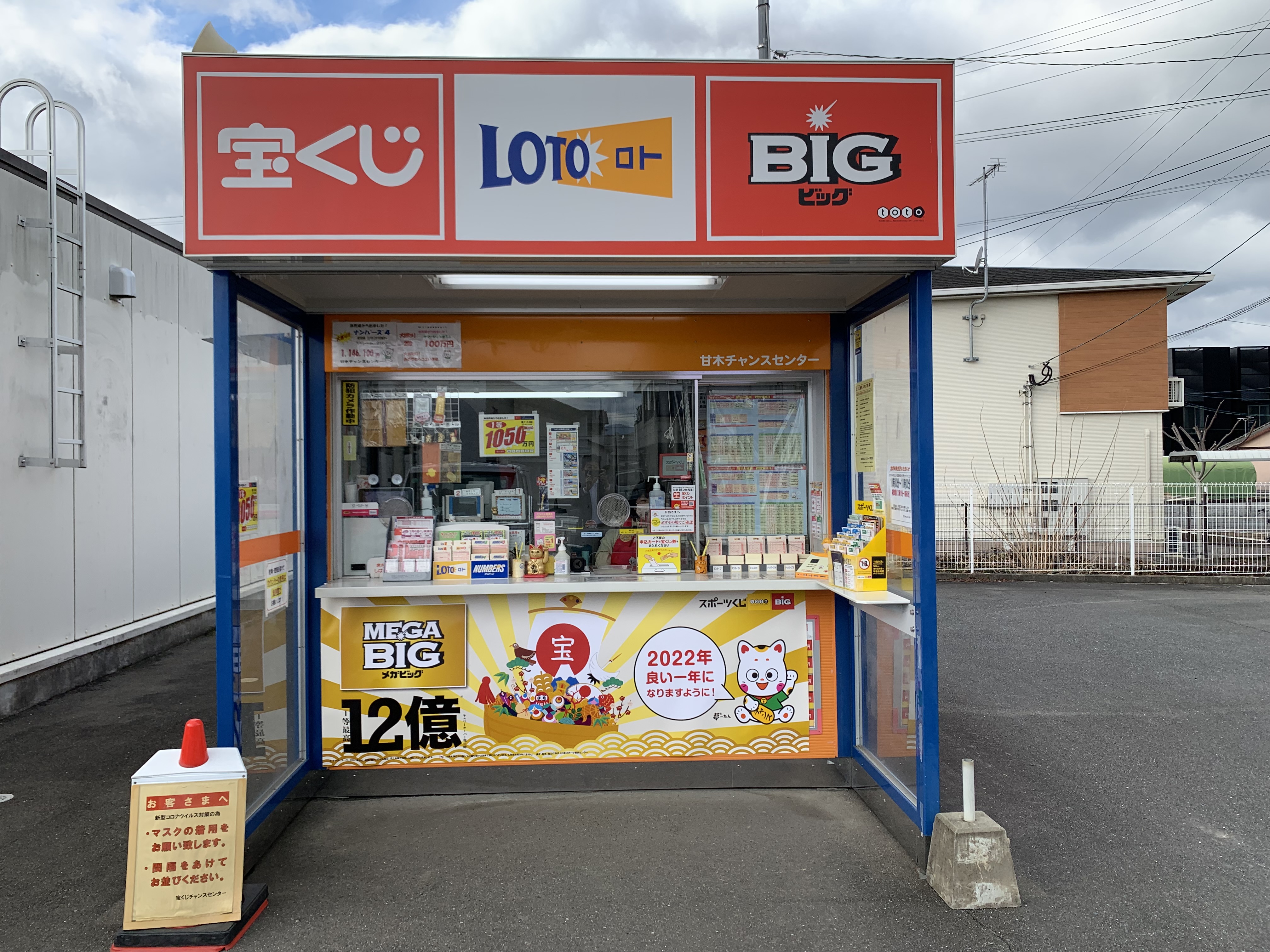 西鉄甘木駅または甘木鉄道線の甘木駅を出て、322号線を北へ徒歩3分、セブンイレブンの駐車場内にある宝くじ売り場です。