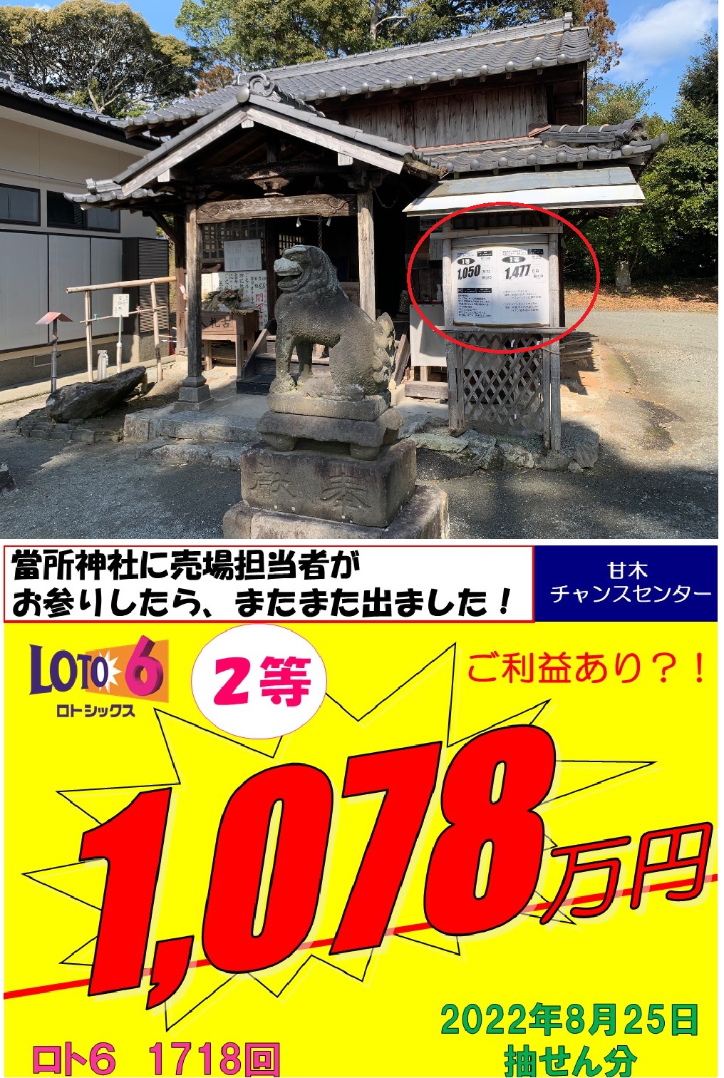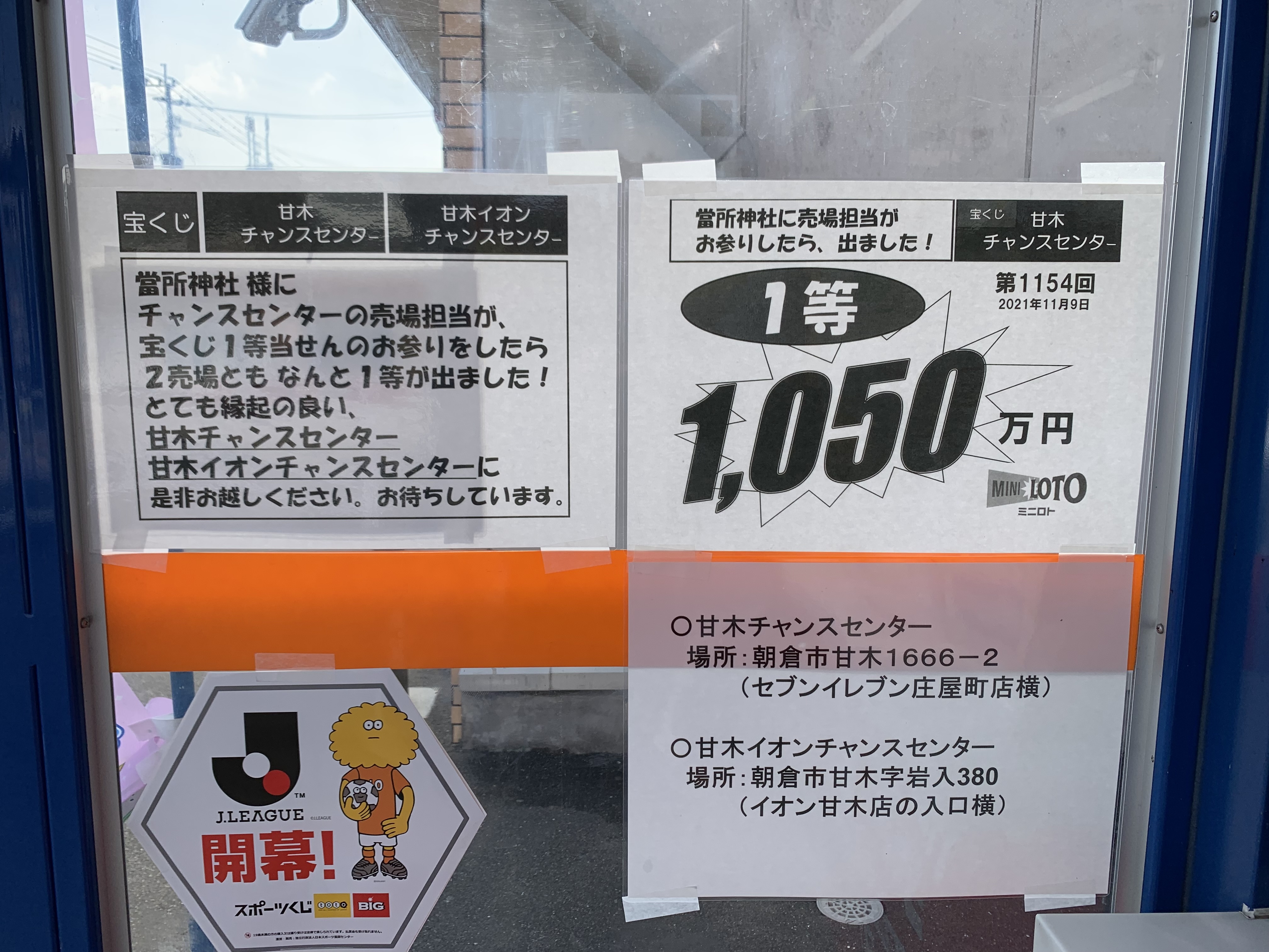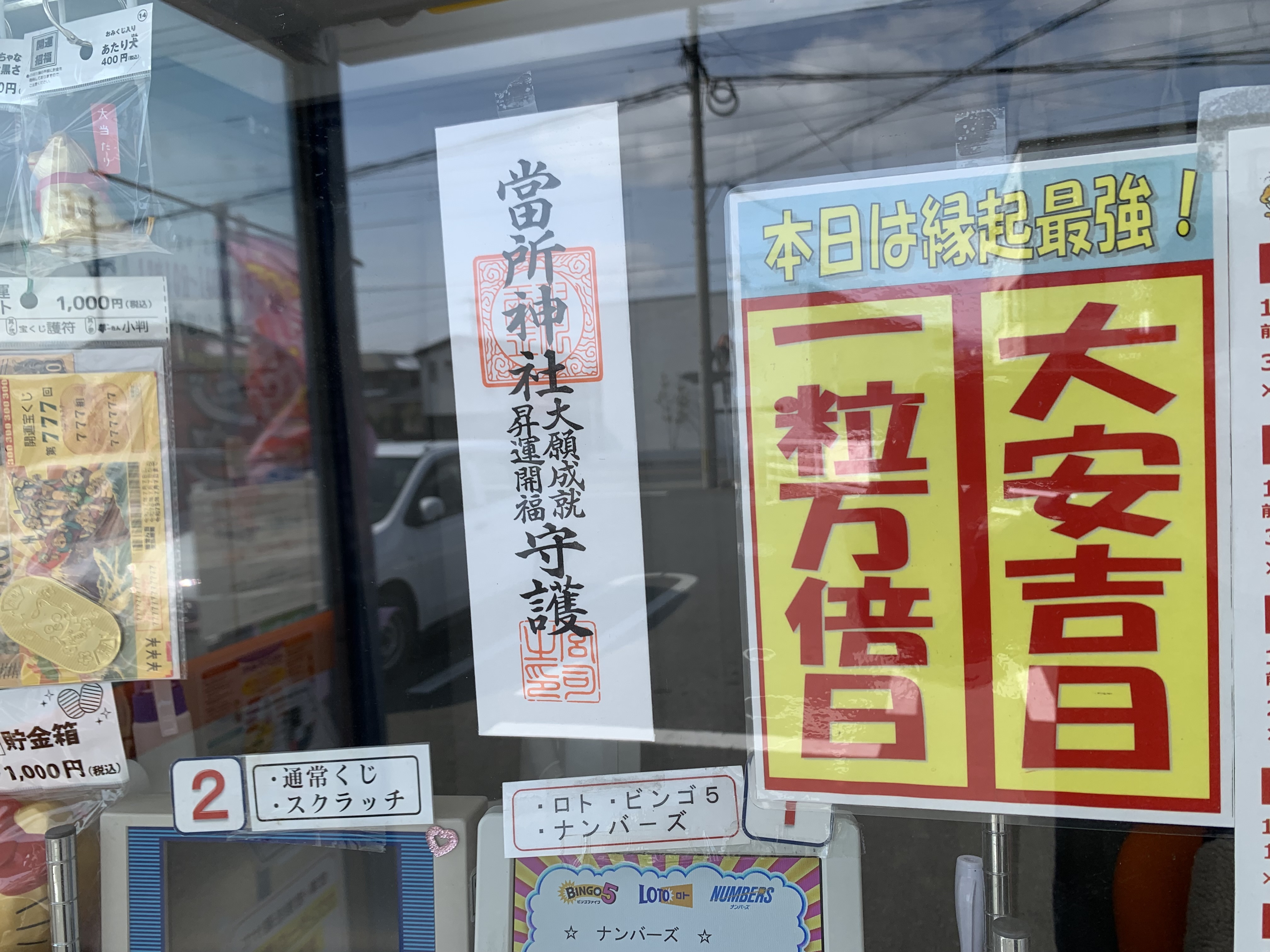 売り場担当が「當所神社」に宝くじ当せん祈念のお参りをしたところ、直後にミニロト1等が出ました。