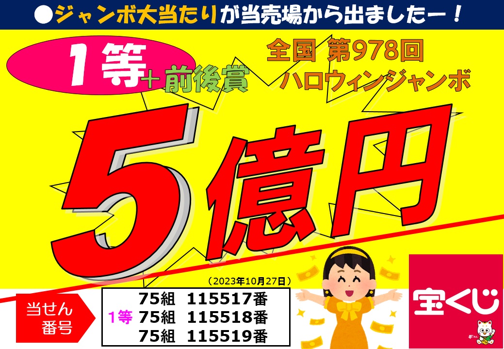 第978回ハロウィンジャンボ1等前後賞100,000,000円