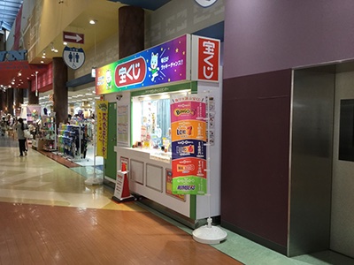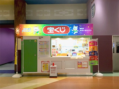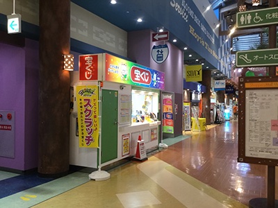 西区豊浜にある愛宕山正面のイオンマリナタウン店にあり、週末になるとたくさんの家族連れで賑わう店内2階にある宝くじ場です。