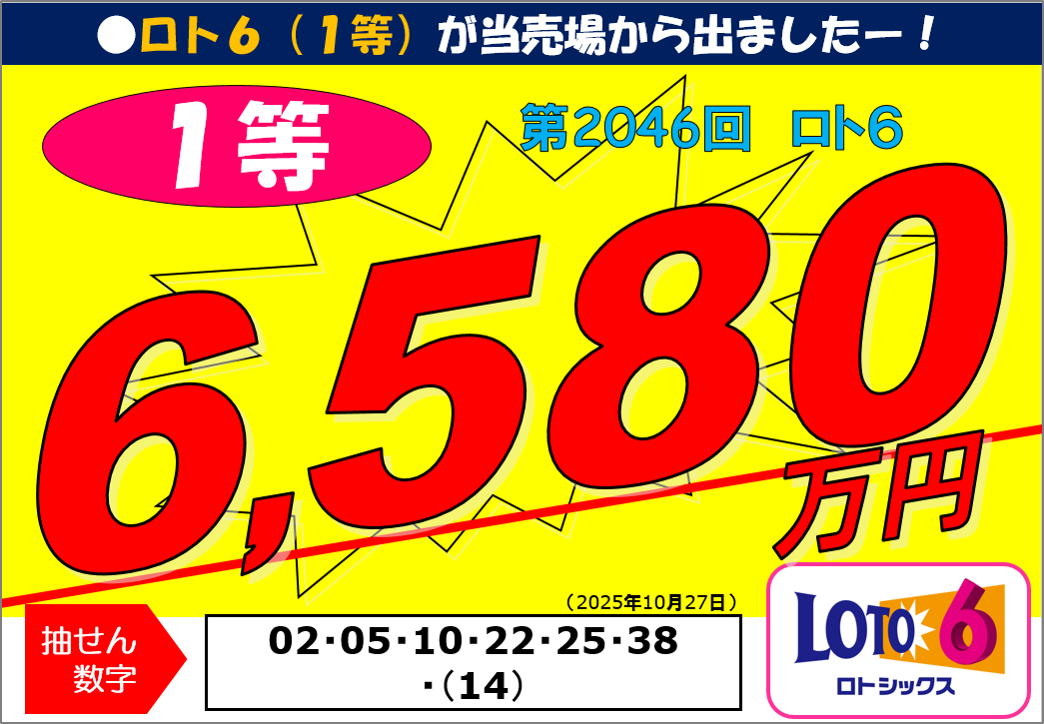 第2046回ロト61等65,800,600円