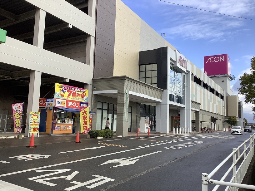 JR筑肥線 虹ノ松原駅から徒歩5分、イオン唐津店西側入口横にある宝くじ売場です。
