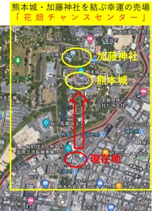 「花畑チャンスセンターで宝くじを買ったら、ふり返って、そっと熊本城・加藤神社に手をあわせましょう!」きっと、あなたは15人目の億万長者!!