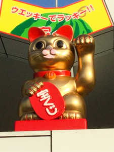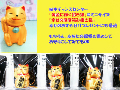 ②宝くじマニアの間でこの招き猫を「携帯の待ち受け」にすると大当たりのご利益が・・との噂も。最近ではこの招き猫を目当てに売場に来る人も増えています。この招き猫も更にゴールドに磨きをかけてリニューアルしました!