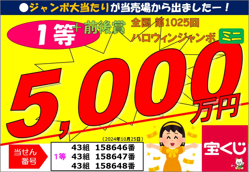 第1025回ハロウィンジャンボミニ1等30,000,000円