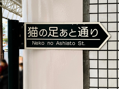 売場のそばにある、極細の『猫の足あと通り』を抜けると、辿り着いた先に『招きネコ』の像が・・・