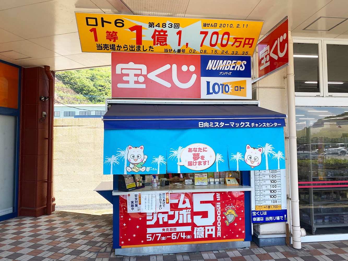 その日向市にある、国道10号線沿いの「ハイパーモール メルクス」に日向ミスターマックス チャンスセンターがあります。
