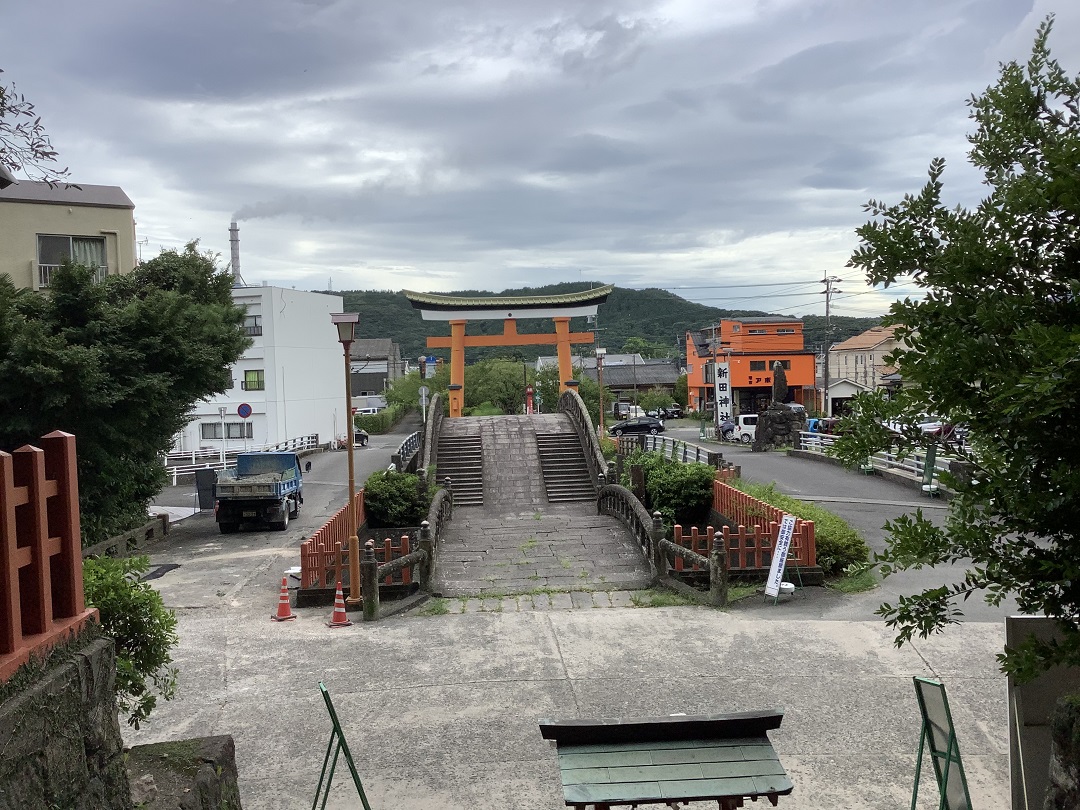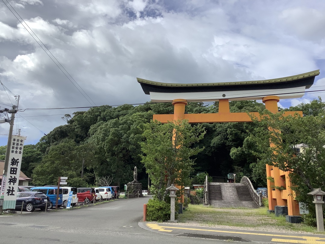 売場近くの人気のパワースポット新田神社(※)で