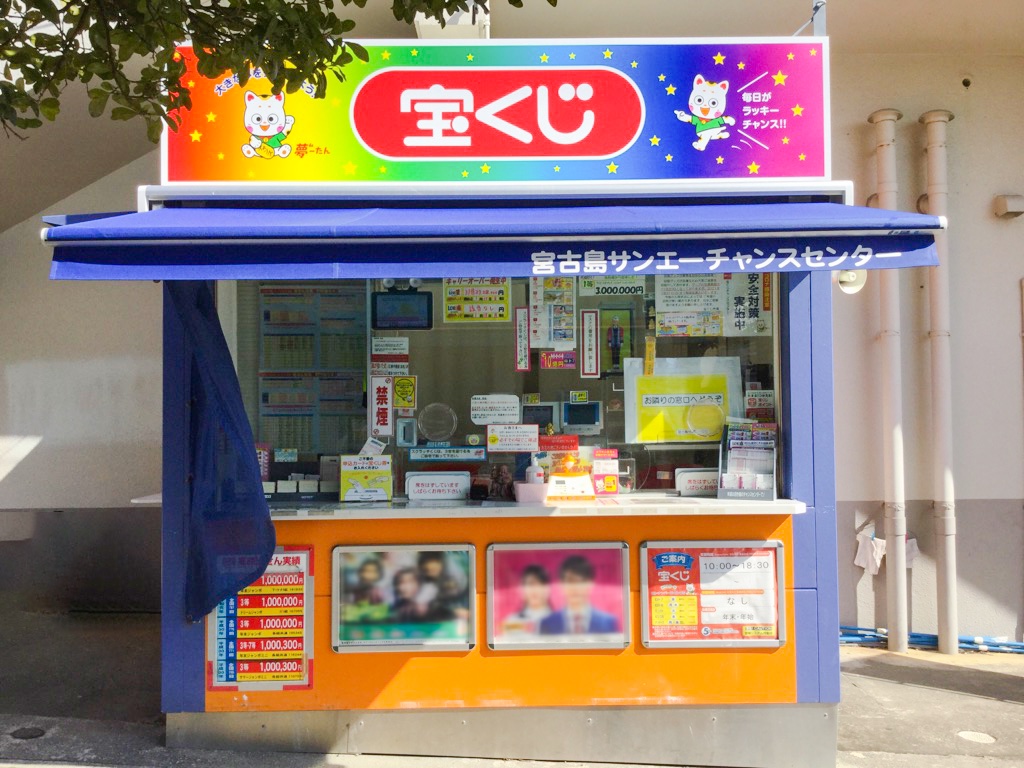 宮古島は600万年前に隆起した珊瑚礁の島で、各ビーチでは世界屈指の透明度を誇る宮古ブルーを楽しむことができます。また見どころ、癒やされどころ満載であるだけでなく、島全体がパワースポットと言われています。その中でも、漲水御嶽(はりみずうたき)、宮古神社という島内で最大のパワースポットが、当売場の近隣にあり、そのご利益もあって当売場でも高額当せんが続々と出ており、2014年以来の「億」の当せんの再来も期待できる幸運の売場です。