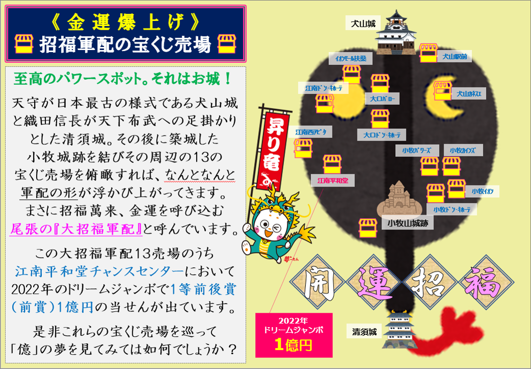 また、この売場は「尾張の大招福軍配」と呼ばれるエリアにある13売場のひとつ。