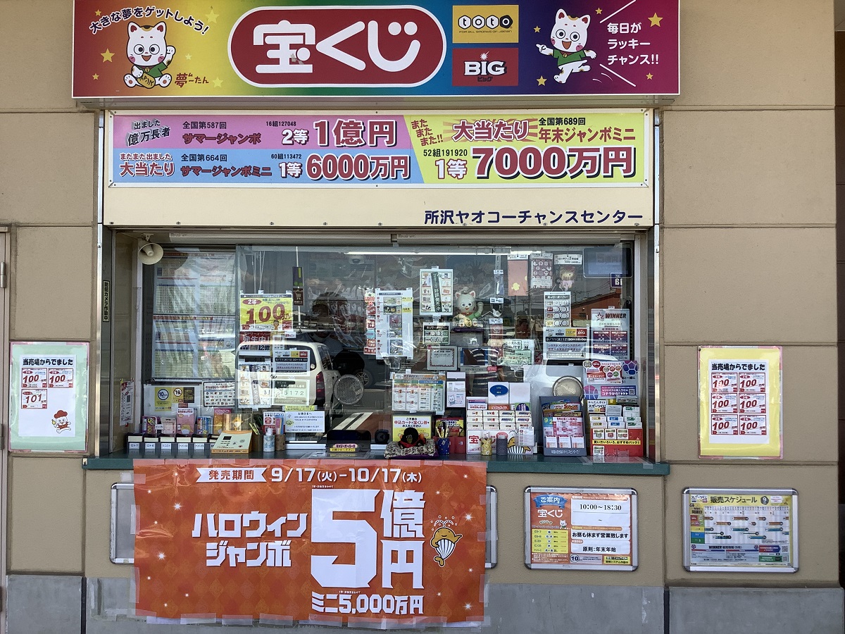 日本の航空発祥の地である「所沢航空記念公園」の程近く、マーケットプレイス所沢、ヤオコー所沢北原店の1階にある売場。「所沢ワルツ」「マミーマート所沢山口」と共に「所沢御三強売場」の1つ。「幸運の当たり亀」が数多くの幸運を招いてくれています。幸運を掴み飛躍するのはあ・な・た!