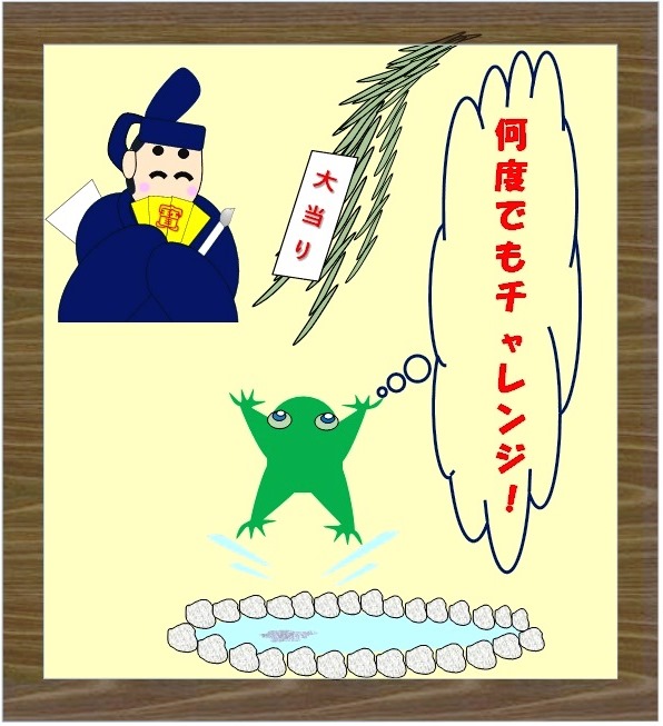 この蛙のように宝くじに何度もチャレンジして幸運をつかみ取りましょう♪