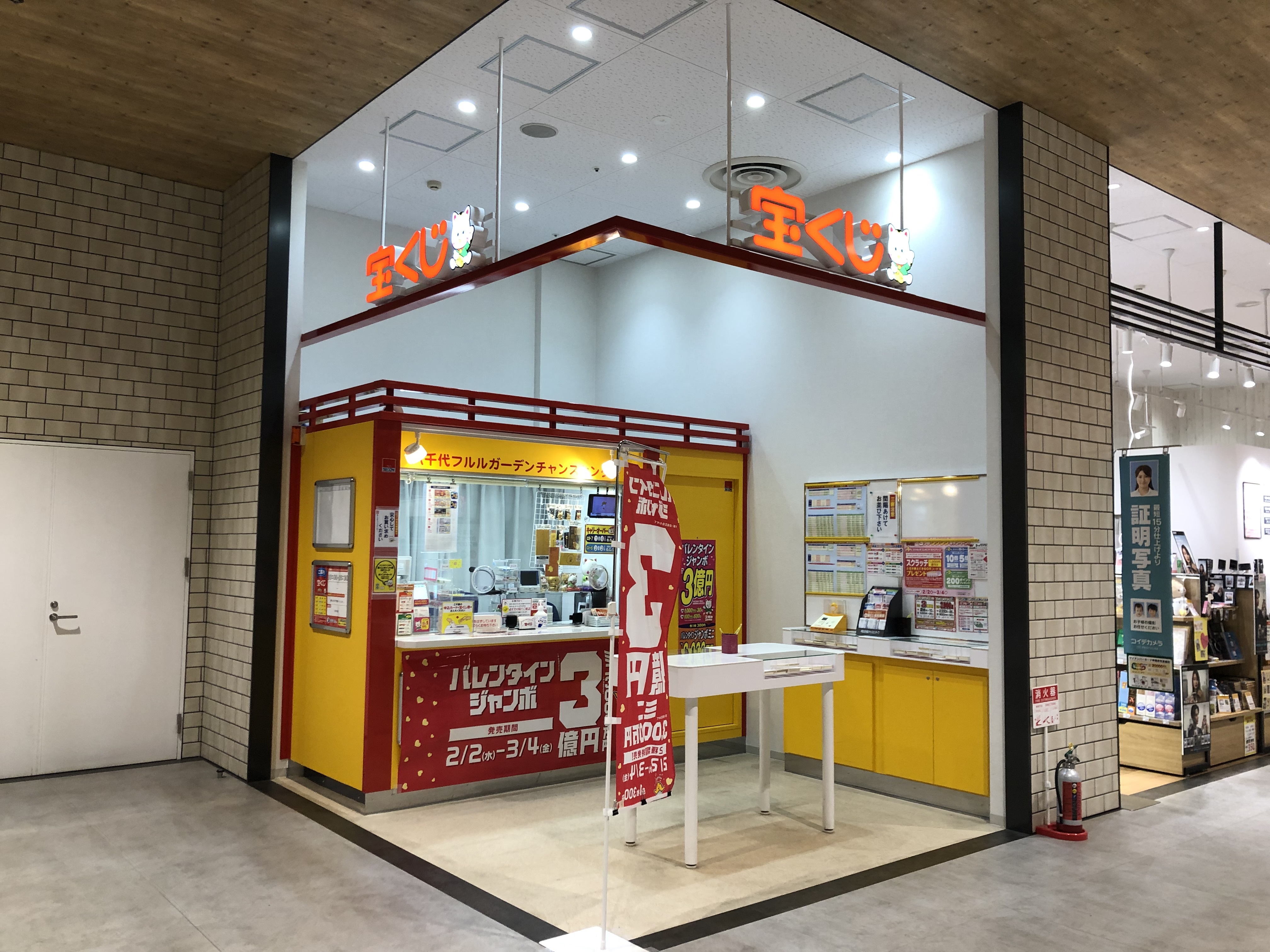 八千代市のランドマーク『フルルガーデン』1階にあるチャンスセンター。2021年秋に新装となったラウンジではロト・ナンバーズ・スクラッチなどの宝くじ選びをゆっくりと楽しめます。国道16号沿い、東葉高速線村上駅から徒歩すぐ!ショッピングやお食事の際は是非チャンスセンターで楽しい夢を!