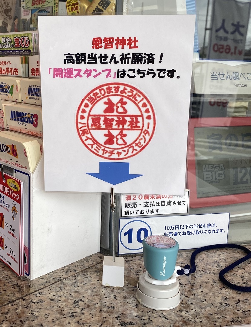 「神兎」で有名な、八尾市にある恩智神社の開運スタンプも常置。八尾空港から程近い売場で、あなたの夢とロマンも離陸させ、億万長者を目指しましょう!すべてのお客さまが当たりますように!!