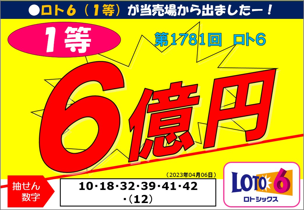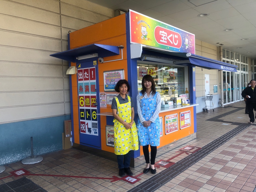 太平洋から昇る朝日が注ぎ込み、パワースポット間違いなしの売場です。それもあってお客様からも、売場の前を蛇が横切る、野鳥が飛び立つ、ガラスにテカマキリやントウムシが付いている時に購入すると当たるとの評判も多く、ついに売場高額当選金額レコード塗り替える大当たりが2023年4月6日抽せんロト6で6億円がでました!!