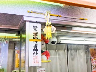 能代の守り神といわれる日吉神社が近くにあり、祀られている大山咋神(おおやまくいのかみ)は、金運のご利益があるとされており、日吉神社の「御札」や「金運の矢」に、高額当せんが出ることを祈願しています。