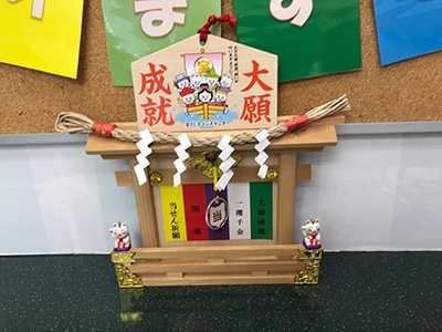 売場のラウンジに、手作りの「神棚」を飾っています。宝くじご購入の際には、高額当せんを御祈願下さい。