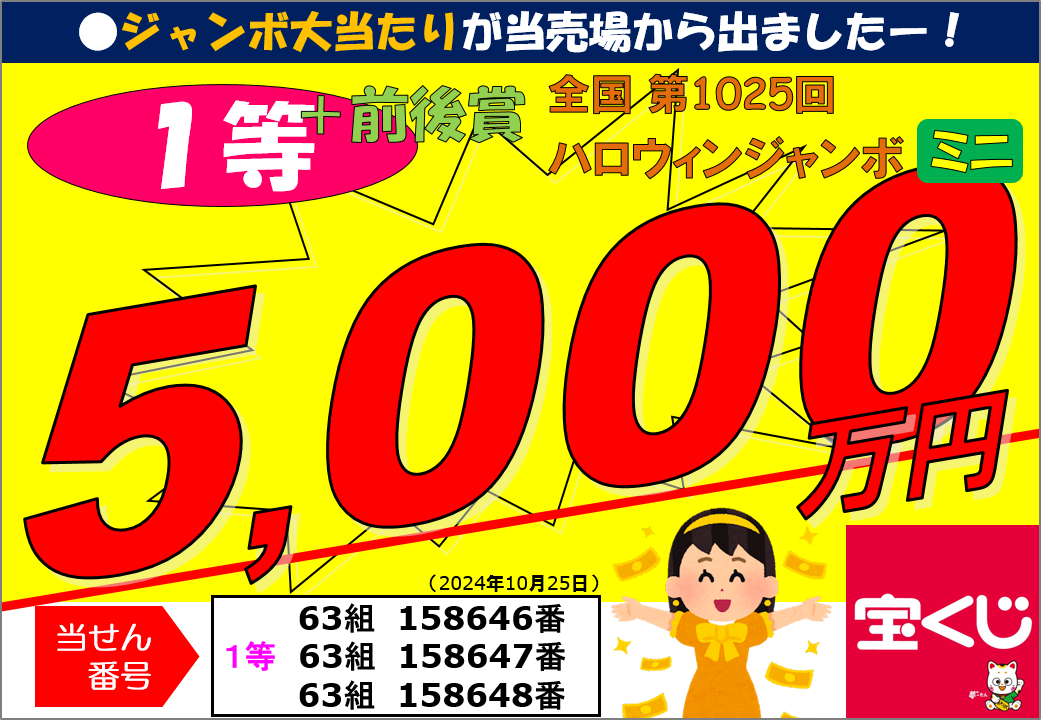 第1025回ハロウィンジャンボミニ1等前後賞10,000,000円