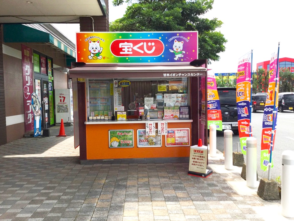 イオン甘木店正面入口、ATM前にある宝くじ売場。