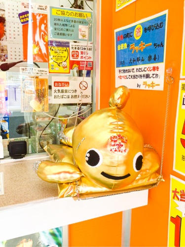 ぜひ、当売場にて購入した宝くじをラッキーちゃんの右わき腹のあたりにスリスリして、高額当せんを狙ってくださいね!