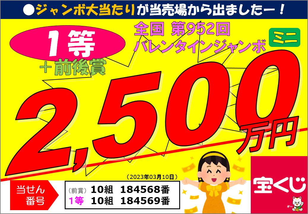 第952回バレンタインジャンボミニ1等前後賞5,000,000円