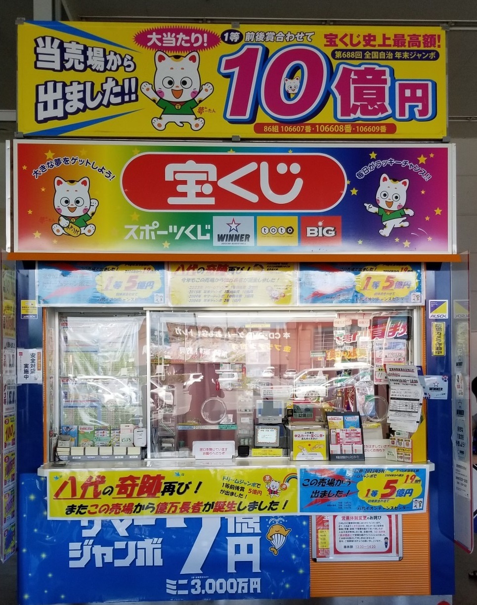 当売場は熊本県第2の田園工業都市「八代市」にあり、年末ジャンボ10億円の大当たりを始めとして億万長者を生んでいる幸運の売場です。