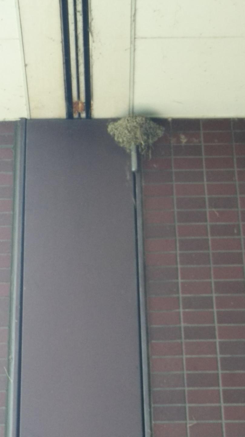 入口(アピタ千代田橋店)の柱に、「ツバメの巣」が出来ました!