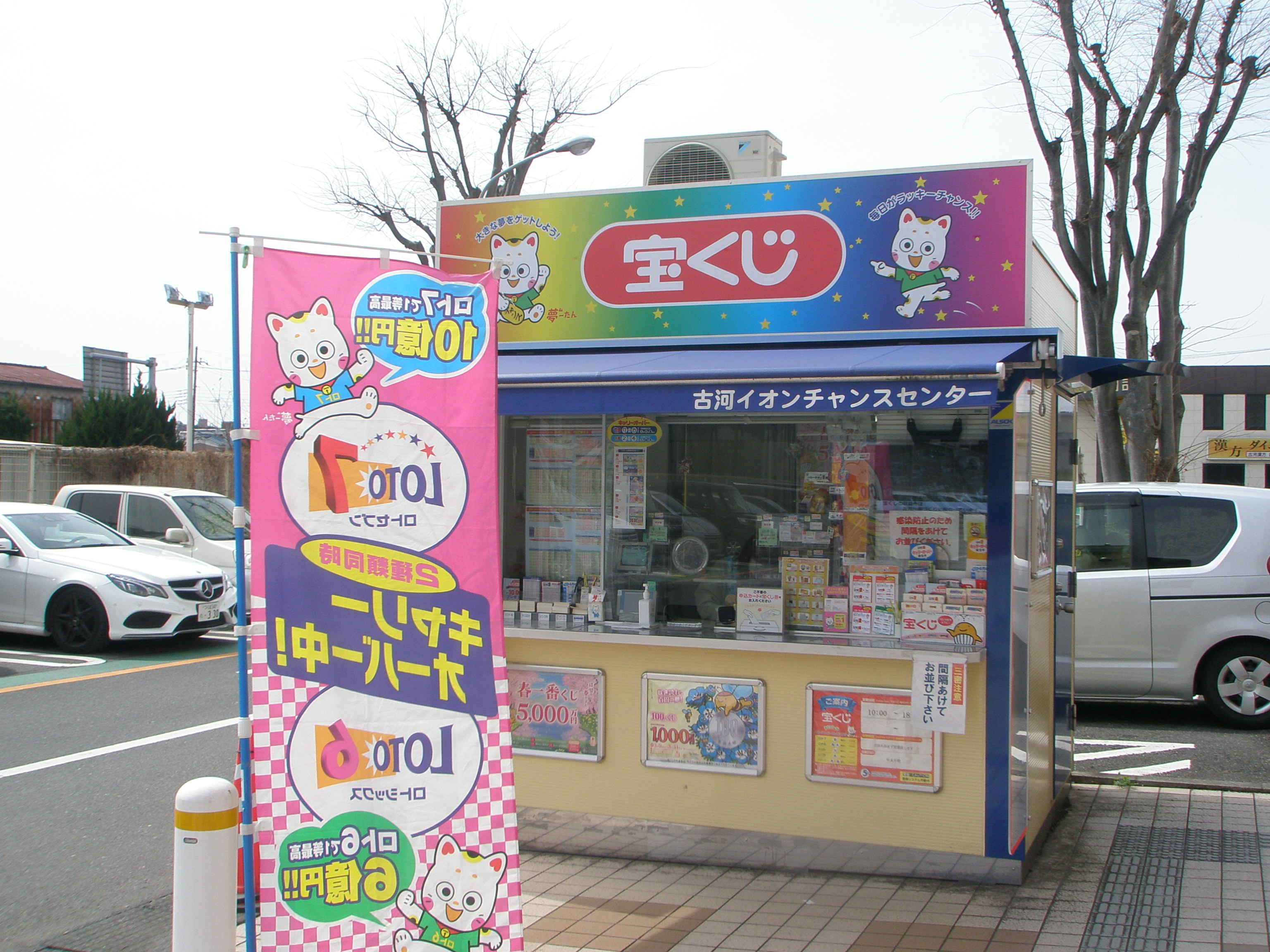 古河イオンチャンスセンターは、茨城県の最西端に位置した古河市のイオン古河店の駐車場内にあります。「ふるかわし」と読まれがちですが『こがし』と読み、埼玉県と栃木県に隣接しています。しばらく高額当せんが出ていないので、私達4人は幸運の女神になれずに、只今女神の修行中です!!1億円の当せんがでたのは、15年も前になりお客さまの記憶に残っていません。近くにパワースポットや幸運を招いてくれる特別な物もありません。ですが、私達にはどこの売場にも負けない誇れる物があります。それは販売員4人のチームワークです。お互いに足らない部分を補い助け合って頑張っています。4人の笑顔がお客さまに伝わり「この売場は4人全員美人だね~」なんてお世辞を言ってくださいます。そんなお客さまの為に1日も早く幸運の女神になれるように明るく元気な笑顔で、お客さまをお待ちしております。