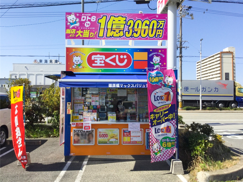 中川運河沿い篠原橋の袂に「良く当たる」と評判の宝くじ売場があります。 毎日のように地元の宝くじファンが売場を訪れる人気の売場です。