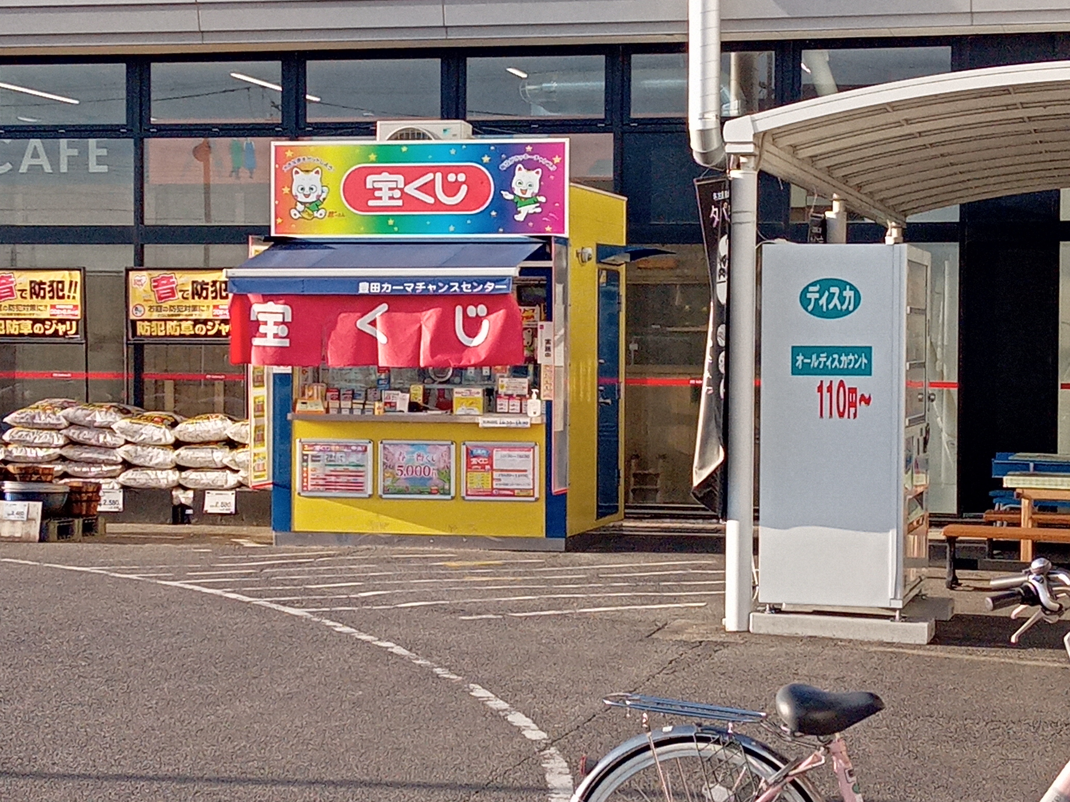 当売場は、豊田市上挙母にあるスーパー銭湯の向かい側に位置するDCM21豊田店の店舗入り口脇にあります。スーパー銭湯でリフレッシュした後に、当売場で宝くじを購入してみませんか。