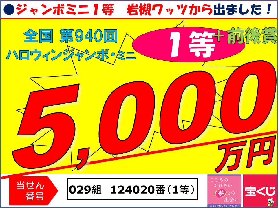 第940回ハロウィンジャンボミニ1等30,000,000円