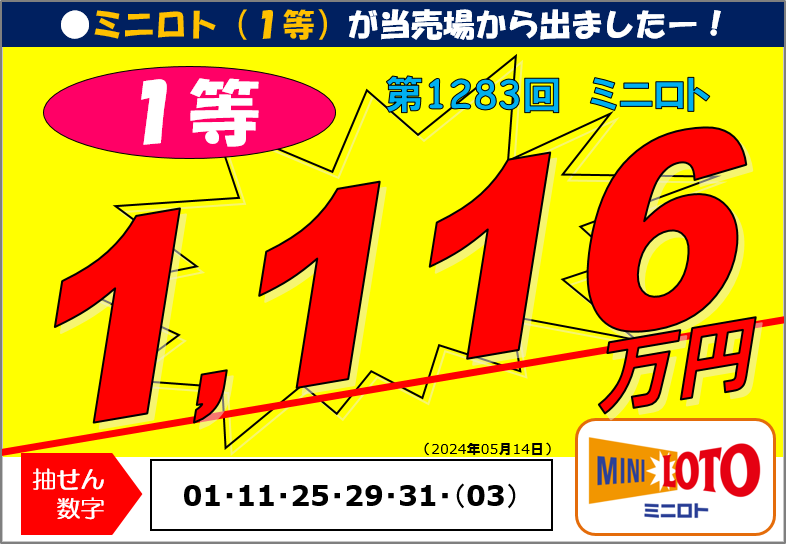 第1283回ミニロト1等11,168,500円