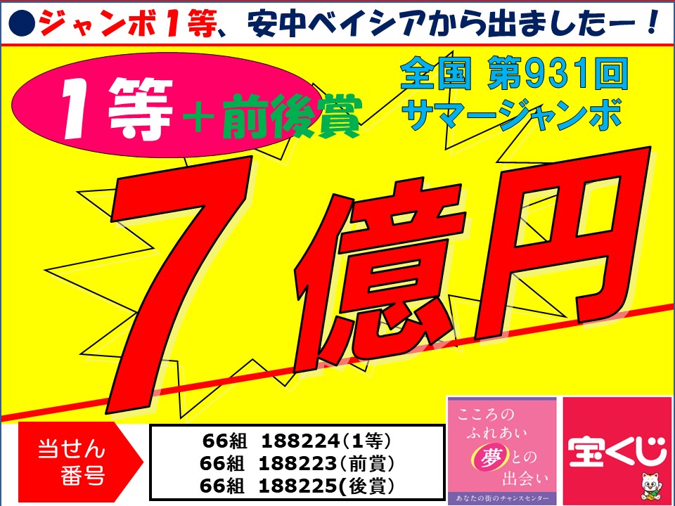 💛💛 2022年8月 サマージャンボで1等前後賞7憶円出ました 💛💛