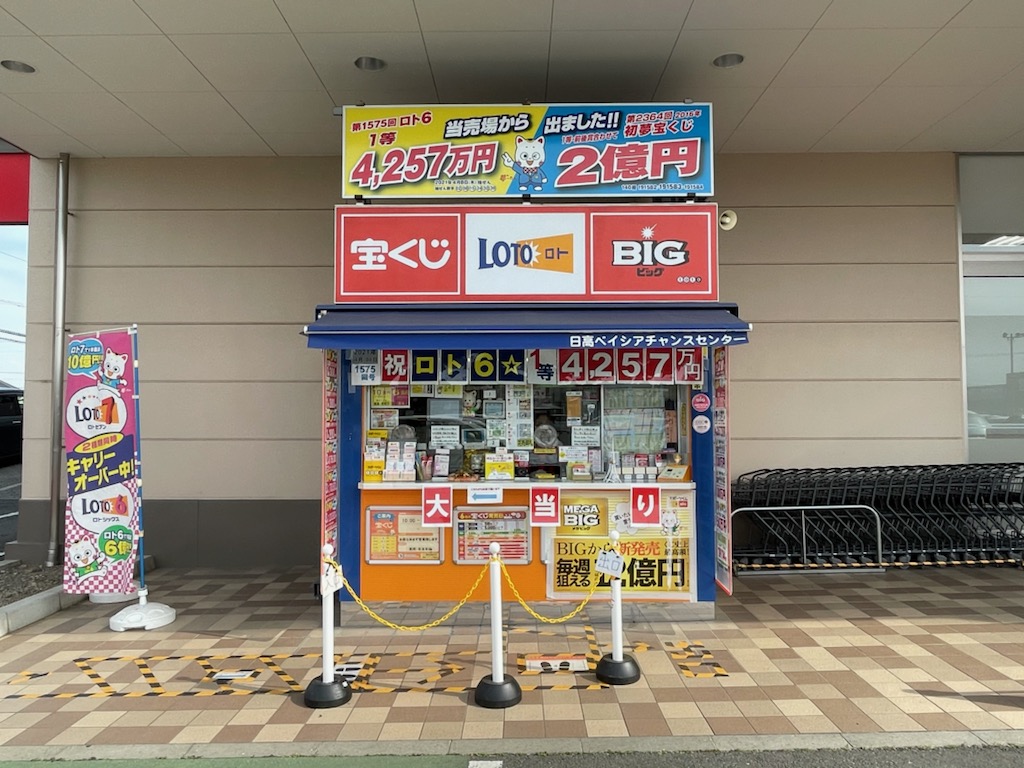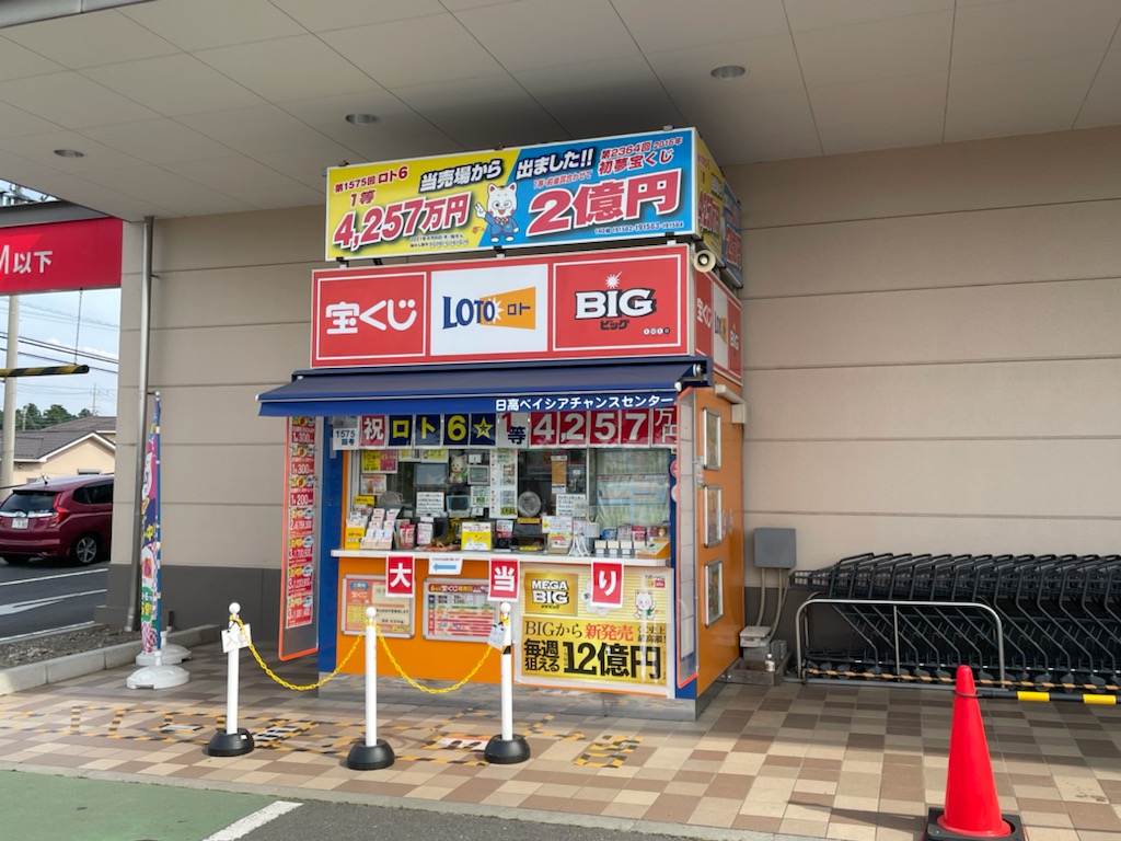 日高市は埼玉県中南部に位置。ベイシアモール日高店1階入口外にあり、連日周辺の多くの宝くじファンにご来店頂いています。