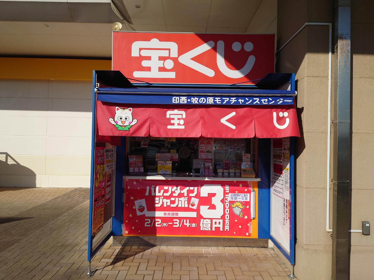 「印西・牧の原モアチャンスセンター」は印西市の東部に位置する総合商業施設『牧の原モア』にあります。売場へのアクセスは、車の他、北総線「印西牧の原駅」からが便利です。売場周辺には食品スーパー、大型電気店やたくさんの専門店の他、ボーリング場やスーパー銭湯「牧の原モア温泉」もあります。ご来店ぜひお待ちしています。