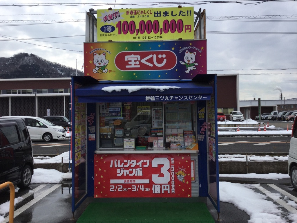 三ツ丸ストア余内店の駐車場横にあるボックスタイプの宝くじ売場です。 駐車場も大きく、お車でのご来店もとても便利で、ご近所・ご遠方から、たくさんのお客さまにご利用頂いております。 安定して高額当選がでており、今後はより高額な当選が期待されます 魚介類が美味しい舞鶴に来られた際は、ぜひお立ち寄りください。