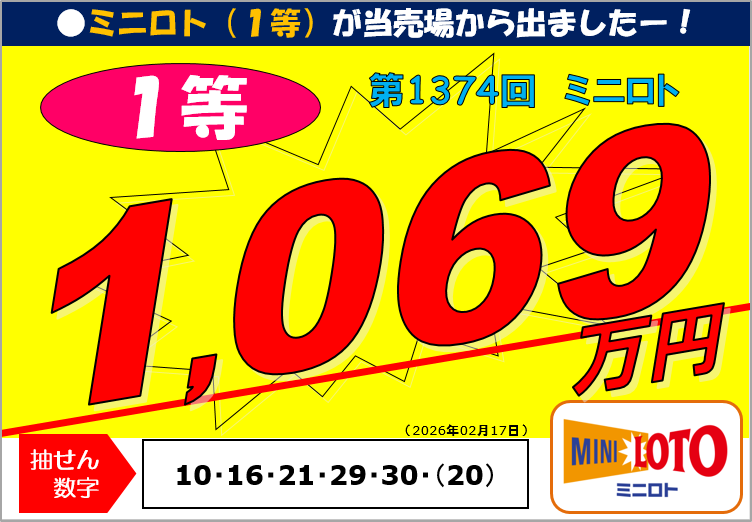 第1374回ミニロト1等10,696,400円